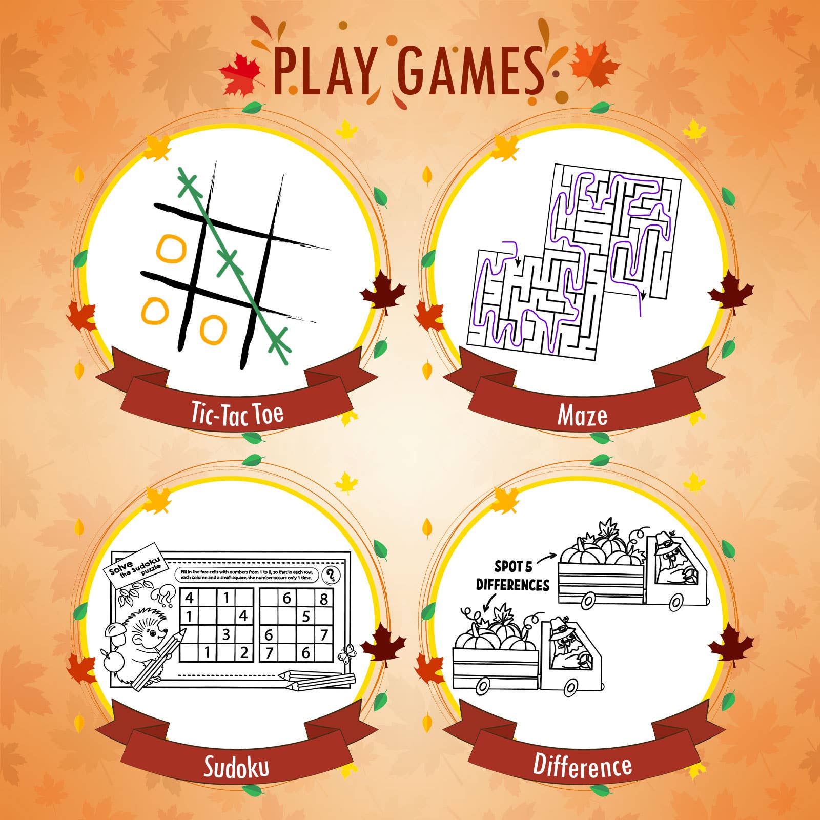 š Multifunctional Thanksgiving Decor: Features Thanksgiving elements and various games like Sudoku, find the difference, and more. Transform your table with Thanksgiving style and add a sense of elegance and gratitude.