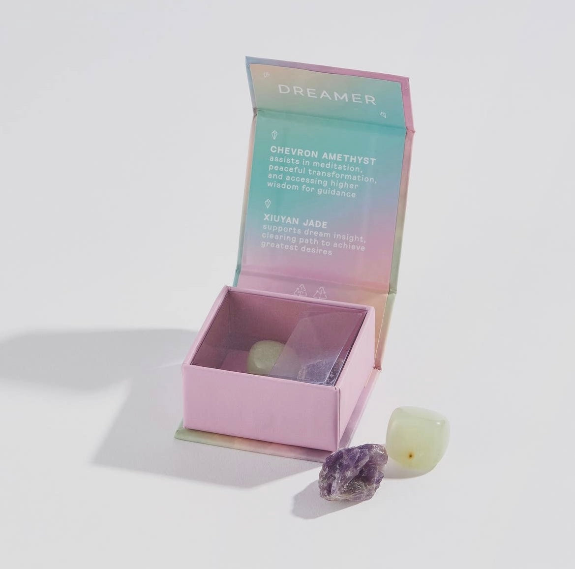 Our Aspire Mini Crystal Sets are the perfect addition to any space. Featuring 2 crystals in each of the Dreamer, Creator, and Leader boxes, these sets are great for inspiring and grounding energies that can help you attain your goals. Perfect for gifting, these crystal sets are sure to bring a special touch to any home.