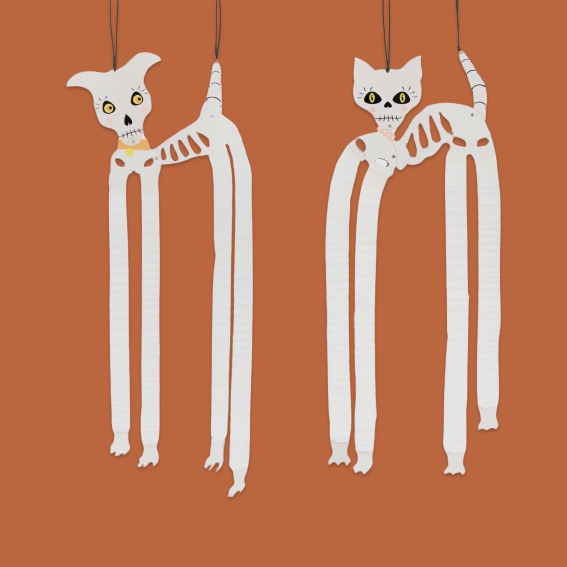 With their honeycomb legs, these oversized cat and dog skeletons will ensure everyone is included in the celebrations and are the perfect balance of cute and creepy. Ideal for a Halloween party, or just addind some pet cemetary fun to your home - hang these skeleton decorations on a front door, chair or mantle piece.