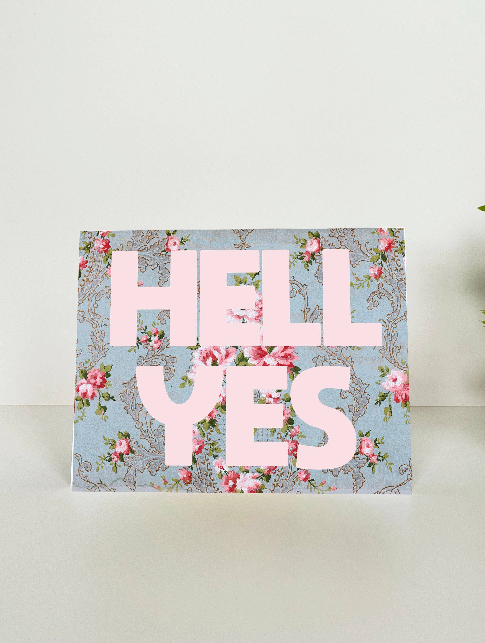 Hell yes. The best little card for your bestie who slays all day, weddings, graduation, baby, new home...basically any time you feel the need to yell out HELL YES! Pretty vintage floral background printed on 130lb paper so cute you will want to frame it. Blank inside.